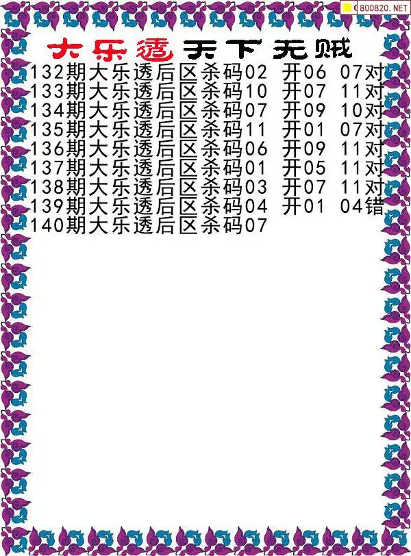 首页〉 大乐透杀号 走势图 大乐透预测大乐透杀号大乐透胆码大乐透技巧天齐图库走势图工具试机号 大乐透2025140期天下无贼后区杀号图谜 专题:后区杀号 发布时间:2025-12-06 22:48 走势图:大乐透综合走势图大乐透期尾走势图 推荐:宝彩APP 免费方案 智能荐号 热点导航 公告: 天齐新版APP<中大多>上线,点击领鲜 最新文章 大乐透2025140期[花枝绯色]前区公式杀号2025年大乐透第140期[大魔王]前区红球杀号2025年大乐透第140期[赴远山]前区精准杀号一码25140期[故事成书]超级大乐透前区杀号预测大乐透25140期[山水几程远]前区精准杀号大乐透第25140期[醉红尘]前区杀号 更多大乐透杀号 > 福彩3D 双色球 大乐透 排列三 更多> 3D胆码 3D预测 3D字谜 3D图谜 解太湖 3D条件 3D杀码 P3预测 P3图谜 P3字谜 P3条件 P3胆码 P3杀码 热点导航 天齐图库 走势图 工具图表 试机号 宝彩专家 智能荐号 菜单导航 关闭 福彩3D 3D专家 3D胆码 3D预测 3D字谜 3D图谜 解太湖 3D条件 3D杀码 3D技巧 3D走势图 体彩P3/P5 P3专家 P3预测 P3图谜 P3字谜 P3条件 P3胆码 P3杀码 P5预测 P3走势图 双色球 双色球专家 双色球预测 双色球杀号 双色球字图 双色球胆码 双色球走势 双色球技巧 大乐透 大乐透专家 大乐透预测 大乐透杀号 大乐透胆码 大乐透技巧 大乐透走势 天齐图库 七星彩 七星彩专家 七星彩预测 七星彩图谜 七星彩杀号 七星彩技巧 七星彩走势 天齐走势 七乐彩 七乐彩专家 七乐彩预测 七乐彩杀号 七乐彩技巧 七乐彩走势 热点导航 彩宝网 宝彩网 宝彩网 开奖公告 宝彩专家 牛票票