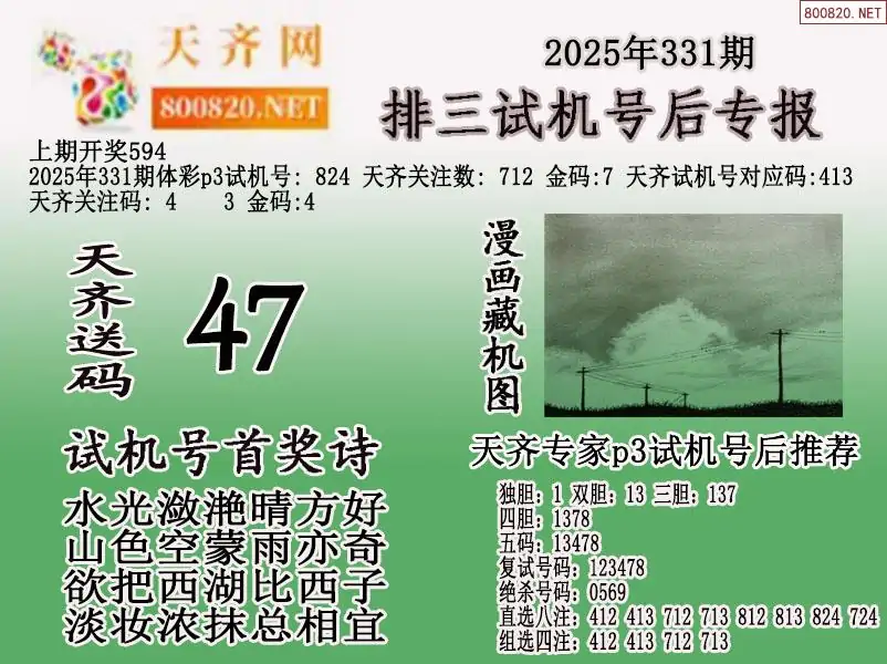 首页〉 P3图谜 走势图 P3预测P3图谜P3字谜P3技巧P3条件P3胆码P3杀码P5预测天齐图库走势图工具试机号 2025年331期体彩p3试机号后天齐网专报 发布时间:2025-12-11 17:47 工具:P3过滤缩水P3试机号走势图 推荐:宝彩APP 免费方案 智能荐号 热点导航 公告: 天齐新版APP<中大多>上线,点击领鲜 最新文章 红黄蓝报25331期小黄报小蓝报25331期体彩P3杀码图迷汇总(天齐网整理)25331期体彩P3胆码图迷汇总(天齐网整理)蜂巢图25331期迷宫寻胆+天机玄机P3图谜25331期彩吧p3全图p3九宫图谜25331期天齐P3图谜总汇 更多P3图谜 > 福彩3D 双色球 大乐透 排列三 更多> 3D胆码 3D预测 3D字谜 3D图谜 解太湖 3D条件 3D杀码 P3预测 P3图谜 P3字谜 P3条件 P3胆码 P3杀码 热点导航 天齐图库 走势图 工具图表 试机号 宝彩专家 智能荐号 菜单导航 关闭 福彩3D 3D专家 3D胆码 3D预测 3D字谜 3D图谜 解太湖 3D条件 3D杀码 3D技巧 3D走势图 体彩P3/P5 P3专家 P3预测 P3图谜 P3字谜 P3条件 P3胆码 P3杀码 P5预测 P3走势图 双色球 双色球专家 双色球预测 双色球杀号 双色球字图 双色球胆码 双色球走势 双色球技巧 大乐透 大乐透专家 大乐透预测 大乐透杀号 大乐透胆码 大乐透技巧 大乐透走势 天齐图库 七星彩 七星彩专家 七星彩预测 七星彩图谜 七星彩杀号 七星彩技巧 七星彩走势 天齐走势 七乐彩 七乐彩专家 七乐彩预测 七乐彩杀号 七乐彩技巧 七乐彩走势 热点导航 彩宝网 宝彩网 宝彩网 开奖公告 宝彩专家 牛票票
