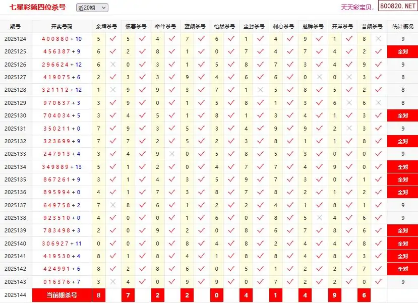 首页〉 七星彩杀号 走势图 七星彩预测七星彩图谜七星彩杀号七星彩技巧天齐图库走势图工具试机号 七星彩144期彩宝贝专家杀四位码 专题:第四位杀号 发布时间:2025-12-13 10:14 走势图:七星彩基本走势图七星彩期尾走势图 推荐:宝彩APP 免费方案 智能荐号 热点导航 公告: 天齐新版APP<中大多>上线,点击领鲜 最新文章 一巴掌2025144期七星彩第七位杀两胆推荐七星彩2025144期无畏第七位杀号推荐七星彩第2025144期不归浪人百万位杀号预测金牌男士2025144期七星彩第六位杀双码推测七星彩2025144期旋律第六位杀号分析七星彩第2025144期黑山老妖十万位杀号定胆 更多七星彩杀号 > 福彩3D 双色球 大乐透 排列三 更多> 3D胆码 3D预测 3D字谜 3D图谜 解太湖 3D条件 3D杀码 P3预测 P3图谜 P3字谜 P3条件 P3胆码 P3杀码 热点导航 天齐图库 走势图 工具图表 试机号 宝彩专家 智能荐号 菜单导航 关闭 福彩3D 3D专家 3D胆码 3D预测 3D字谜 3D图谜 解太湖 3D条件 3D杀码 3D技巧 3D走势图 体彩P3/P5 P3专家 P3预测 P3图谜 P3字谜 P3条件 P3胆码 P3杀码 P5预测 P3走势图 双色球 双色球专家 双色球预测 双色球杀号 双色球字图 双色球胆码 双色球走势 双色球技巧 大乐透 大乐透专家 大乐透预测 大乐透杀号 大乐透胆码 大乐透技巧 大乐透走势 天齐图库 七星彩 七星彩专家 七星彩预测 七星彩图谜 七星彩杀号 七星彩技巧 七星彩走势 天齐走势 七乐彩 七乐彩专家 七乐彩预测 七乐彩杀号 七乐彩技巧 七乐彩走势 热点导航 彩宝网 宝彩网 宝彩网 开奖公告 宝彩专家 牛票票
