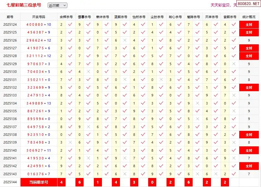 首页〉 七星彩杀号 走势图 七星彩预测七星彩图谜七星彩杀号七星彩技巧天齐图库走势图工具试机号 七星彩144期彩宝贝专家杀三位码 专题:第三位杀号 发布时间:2025-12-13 10:16 走势图:七星彩基本走势图七星彩期尾走势图 推荐:宝彩APP 免费方案 智能荐号 热点导航 公告: 天齐新版APP<中大多>上线,点击领鲜 最新文章 一巴掌2025144期七星彩第七位杀两胆推荐七星彩2025144期无畏第七位杀号推荐七星彩第2025144期不归浪人百万位杀号预测金牌男士2025144期七星彩第六位杀双码推测七星彩2025144期旋律第六位杀号分析七星彩第2025144期黑山老妖十万位杀号定胆 更多七星彩杀号 > 福彩3D 双色球 大乐透 排列三 更多> 3D胆码 3D预测 3D字谜 3D图谜 解太湖 3D条件 3D杀码 P3预测 P3图谜 P3字谜 P3条件 P3胆码 P3杀码 热点导航 天齐图库 走势图 工具图表 试机号 宝彩专家 智能荐号 菜单导航 关闭 福彩3D 3D专家 3D胆码 3D预测 3D字谜 3D图谜 解太湖 3D条件 3D杀码 3D技巧 3D走势图 体彩P3/P5 P3专家 P3预测 P3图谜 P3字谜 P3条件 P3胆码 P3杀码 P5预测 P3走势图 双色球 双色球专家 双色球预测 双色球杀号 双色球字图 双色球胆码 双色球走势 双色球技巧 大乐透 大乐透专家 大乐透预测 大乐透杀号 大乐透胆码 大乐透技巧 大乐透走势 天齐图库 七星彩 七星彩专家 七星彩预测 七星彩图谜 七星彩杀号 七星彩技巧 七星彩走势 天齐走势 七乐彩 七乐彩专家 七乐彩预测 七乐彩杀号 七乐彩技巧 七乐彩走势 热点导航 彩宝网 宝彩网 宝彩网 开奖公告 宝彩专家 牛票票