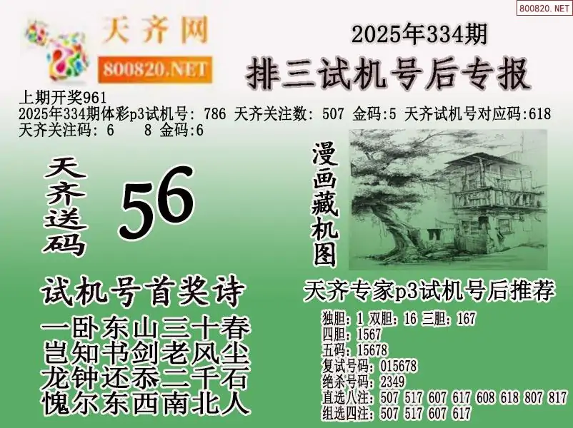 首页〉 P3图谜 走势图 P3预测P3图谜P3字谜P3技巧P3条件P3胆码P3杀码P5预测天齐图库走势图工具试机号 2025年334期体彩p3试机号后天齐网专报 发布时间:2025-12-14 18:01 工具:P3过滤缩水P3试机号走势图 推荐:宝彩APP 免费方案 智能荐号 热点导航 公告: 天齐新版APP<中大多>上线,点击领鲜 最新文章 红黄蓝报25334期小黄报小蓝报25334期体彩P3杀码图迷汇总(天齐网整理)25334期体彩P3胆码图迷汇总(天齐网整理)蜂巢图25334期迷宫寻胆+天机玄机P3图谜25334期彩吧p3全图p3九宫图谜25334期天齐P3图谜总汇 更多P3图谜 > 福彩3D 双色球 大乐透 排列三 更多> 3D胆码 3D预测 3D字谜 3D图谜 解太湖 3D条件 3D杀码 P3预测 P3图谜 P3字谜 P3条件 P3胆码 P3杀码 热点导航 天齐图库 走势图 工具图表 试机号 宝彩专家 智能荐号 菜单导航 关闭 福彩3D 3D专家 3D胆码 3D预测 3D字谜 3D图谜 解太湖 3D条件 3D杀码 3D技巧 3D走势图 体彩P3/P5 P3专家 P3预测 P3图谜 P3字谜 P3条件 P3胆码 P3杀码 P5预测 P3走势图 双色球 双色球专家 双色球预测 双色球杀号 双色球字图 双色球胆码 双色球走势 双色球技巧 大乐透 大乐透专家 大乐透预测 大乐透杀号 大乐透胆码 大乐透技巧 大乐透走势 天齐图库 七星彩 七星彩专家 七星彩预测 七星彩图谜 七星彩杀号 七星彩技巧 七星彩走势 天齐走势 七乐彩 七乐彩专家 七乐彩预测 七乐彩杀号 七乐彩技巧 七乐彩走势 热点导航 彩宝网 宝彩网 宝彩网 开奖公告 宝彩专家 牛票票