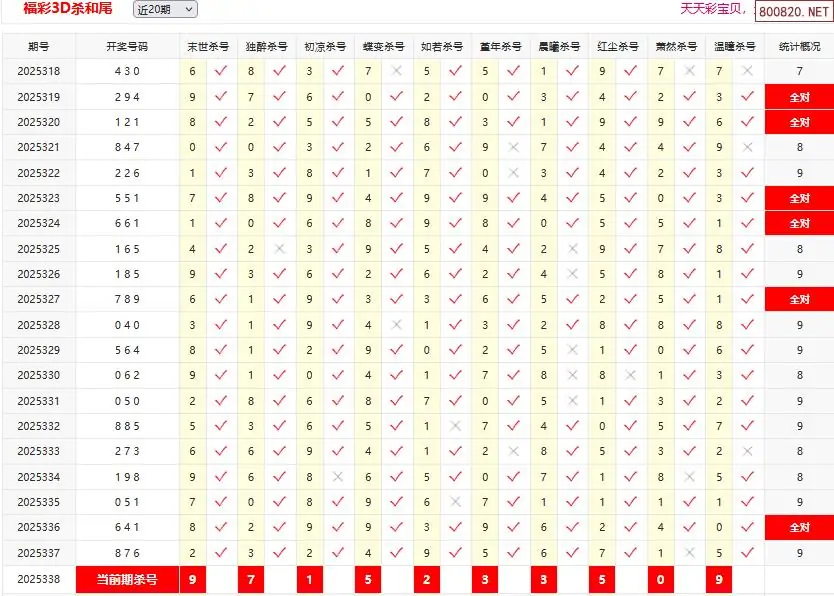 首页〉 3D条件 走势图 3D胆码3D预测3D图谜3D字谜解太湖3D技巧3D条件3D杀码天齐图库走势图工具试机号 25338期彩宝贝福彩3D杀和尾 专题:3d和尾十专家杀尾汇总 发布时间:2025-12-18 10:28 开奖:3D开奖结果3D近10期试机号 推荐:宝彩APP 免费方案 智能荐号 热点导航 公告: 天齐新版APP<中大多>上线,点击领鲜 最新文章 [交友]第2025338期3D本期单挑和差2025年福彩3D338期[天涯草]精选断组-原创2025年福彩3D338期[圆圆]杀二码组合-原创2025年福彩3D338期[神算胆王]绝杀和值-原创2025年福彩3D338期[仙子]杀跨度-原创2025年福彩3D338期[无殇]专业断组-原创 更多3D条件 > 福彩3D 双色球 大乐透 排列三 更多> 3D胆码 3D预测 3D字谜 3D图谜 解太湖 3D条件 3D杀码 P3预测 P3图谜 P3字谜 P3条件 P3胆码 P3杀码 热点导航 天齐图库 走势图 工具图表 试机号 宝彩专家 智能荐号 菜单导航 关闭 福彩3D 3D专家 3D胆码 3D预测 3D字谜 3D图谜 解太湖 3D条件 3D杀码 3D技巧 3D走势图 体彩P3/P5 P3专家 P3预测 P3图谜 P3字谜 P3条件 P3胆码 P3杀码 P5预测 P3走势图 双色球 双色球专家 双色球预测 双色球杀号 双色球字图 双色球胆码 双色球走势 双色球技巧 大乐透 大乐透专家 大乐透预测 大乐透杀号 大乐透胆码 大乐透技巧 大乐透走势 天齐图库 七星彩 七星彩专家 七星彩预测 七星彩图谜 七星彩杀号 七星彩技巧 七星彩走势 天齐走势 七乐彩 七乐彩专家 七乐彩预测 七乐彩杀号 七乐彩技巧 七乐彩走势 热点导航 彩宝网 宝彩网 宝彩网 开奖公告 宝彩专家 牛票票