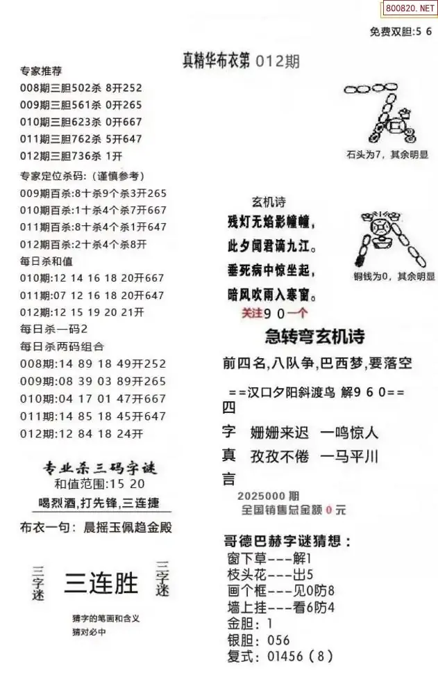 首页〉 3D图谜 走势图 3D胆码3D预测3D图谜3D字谜解太湖3D技巧3D条件3D杀码天齐图库走势图工具试机号 26012期精华布衣123456+好心+早版12 专题:精布衣 发布时间:2026-01-11 19:51 开奖:3D开奖结果3D近10期试机号 推荐:宝彩APP 免费方案 智能荐号 热点导航 公告: 天齐新版APP<中大多>上线,点击领鲜 最新文章 26年047期解太湖3d字图迷汇总彩报2026年047期精华布衣3D全图2026年047期3D图谜汇总(九)2026年047期3D图谜汇总(八)2026年047期3D图谜汇总(七)2026年047期3d图迷汇总(六) 更多3D图谜 > 福彩3D 双色球 大乐透 排列三 更多> 3D胆码 3D预测 3D字谜 3D图谜 解太湖 3D条件 3D杀码 P3预测 P3图谜 P3字谜 P3条件 P3胆码 P3杀码 热点导航 天齐图库 走势图 工具图表 试机号 宝彩专家 智能荐号 菜单导航 关闭 福彩3D 3D专家 3D胆码 3D预测 3D字谜 3D图谜 解太湖 3D条件 3D杀码 3D技巧 3D走势图 体彩P3/P5 P3专家 P3预测 P3图谜 P3字谜 P3条件 P3胆码 P3杀码 P5预测 P3走势图 双色球 双色球专家 双色球预测 双色球杀号 双色球字图 双色球胆码 双色球走势 双色球技巧 大乐透 大乐透专家 大乐透预测 大乐透杀号 大乐透胆码 大乐透技巧 大乐透走势 天齐图库 七星彩 七星彩专家 七星彩预测 七星彩图谜 七星彩杀号 七星彩技巧 七星彩走势 天齐走势 七乐彩 七乐彩专家 七乐彩预测 七乐彩杀号 七乐彩技巧 七乐彩走势 热点导航 彩宝网 宝彩网 宝彩网 开奖公告 宝彩专家 牛票票