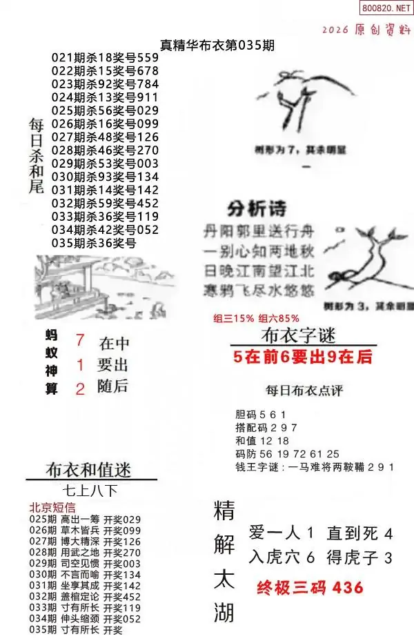 首页〉 3D图谜 走势图 3D胆码3D预测3D图谜3D字谜解太湖3D技巧3D条件3D杀码天齐图库走势图工具试机号 26035期精华布衣123456+好心+早版12 专题:精布衣 发布时间:2026-02-03 19:46 开奖:3D开奖结果3D近10期试机号 推荐:宝彩APP 免费方案 智能荐号 热点导航 公告: 天齐新版APP<中大多>上线,点击领鲜 最新文章 2026年035期精华布衣3D全图26年035期解太湖3d字图迷汇总彩报2026年035期3D图谜汇总(九)2026年035期3D图谜汇总(八)2026年035期3D图谜汇总(七)2026年035期3d图迷汇总(六) 更多3D图谜 > 福彩3D 双色球 大乐透 排列三 更多> 3D胆码 3D预测 3D字谜 3D图谜 解太湖 3D条件 3D杀码 P3预测 P3图谜 P3字谜 P3条件 P3胆码 P3杀码 热点导航 天齐图库 走势图 工具图表 试机号 宝彩专家 智能荐号 菜单导航 关闭 福彩3D 3D专家 3D胆码 3D预测 3D字谜 3D图谜 解太湖 3D条件 3D杀码 3D技巧 3D走势图 体彩P3/P5 P3专家 P3预测 P3图谜 P3字谜 P3条件 P3胆码 P3杀码 P5预测 P3走势图 双色球 双色球专家 双色球预测 双色球杀号 双色球字图 双色球胆码 双色球走势 双色球技巧 大乐透 大乐透专家 大乐透预测 大乐透杀号 大乐透胆码 大乐透技巧 大乐透走势 天齐图库 七星彩 七星彩专家 七星彩预测 七星彩图谜 七星彩杀号 七星彩技巧 七星彩走势 天齐走势 七乐彩 七乐彩专家 七乐彩预测 七乐彩杀号 七乐彩技巧 七乐彩走势 热点导航 彩宝网 宝彩网 宝彩网 开奖公告 宝彩专家 牛票票