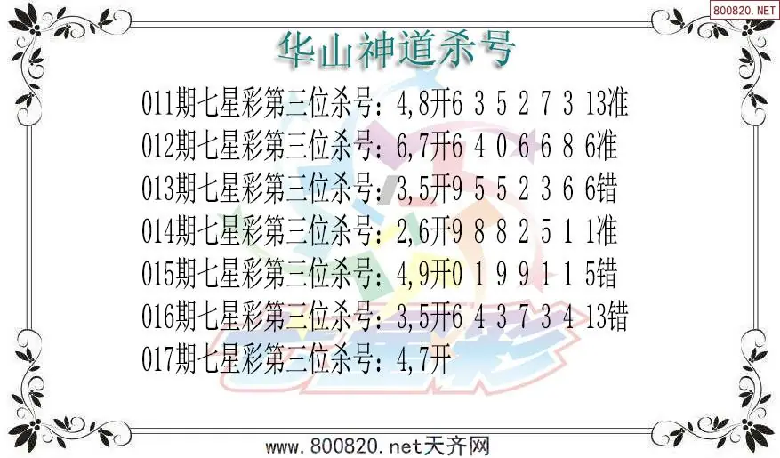 首页〉 七星彩图谜 走势图 七星彩预测七星彩图谜七星彩杀号七星彩技巧天齐图库走势图工具试机号 华山神道26年017期七星彩杀号图谜 发布时间:2026-02-06 22:11 走势图:七星彩基本走势图七星彩期尾走势图 推荐:宝彩APP 免费方案 智能荐号 热点导航 公告: 天齐新版APP<中大多>上线,点击领鲜 最新文章 太上道祖26年017期七星彩杀号图谜华山神道26年017期七星彩杀号图谜2026年017期龟丞相七星彩三码预测图豆豆先生2026017期七星彩三胆推荐图2026年老酒鬼017期七星彩胆码推测图七星彩2026017期燕赤霞不定位杀码图 更多七星彩图谜 > 福彩3D 双色球 大乐透 排列三 更多> 3D胆码 3D预测 3D字谜 3D图谜 解太湖 3D条件 3D杀码 P3预测 P3图谜 P3字谜 P3条件 P3胆码 P3杀码 热点导航 天齐图库 走势图 工具图表 试机号 宝彩专家 智能荐号 菜单导航 关闭 福彩3D 3D专家 3D胆码 3D预测 3D字谜 3D图谜 解太湖 3D条件 3D杀码 3D技巧 3D走势图 体彩P3/P5 P3专家 P3预测 P3图谜 P3字谜 P3条件 P3胆码 P3杀码 P5预测 P3走势图 双色球 双色球专家 双色球预测 双色球杀号 双色球字图 双色球胆码 双色球走势 双色球技巧 大乐透 大乐透专家 大乐透预测 大乐透杀号 大乐透胆码 大乐透技巧 大乐透走势 天齐图库 七星彩 七星彩专家 七星彩预测 七星彩图谜 七星彩杀号 七星彩技巧 七星彩走势 天齐走势 七乐彩 七乐彩专家 七乐彩预测 七乐彩杀号 七乐彩技巧 七乐彩走势 热点导航 彩宝网 宝彩网 宝彩网 开奖公告 宝彩专家 牛票票