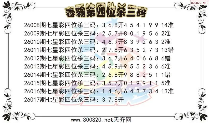 首页〉 七星彩图谜 走势图 七星彩预测七星彩图谜七星彩杀号七星彩技巧天齐图库走势图工具试机号 毒霸26年017期七星彩杀号图谜 发布时间:2026-02-06 22:11 走势图:七星彩基本走势图七星彩期尾走势图 推荐:宝彩APP 免费方案 智能荐号 热点导航 公告: 天齐新版APP<中大多>上线,点击领鲜 最新文章 太上道祖26年017期七星彩杀号图谜华山神道26年017期七星彩杀号图谜2026年017期龟丞相七星彩三码预测图豆豆先生2026017期七星彩三胆推荐图2026年老酒鬼017期七星彩胆码推测图七星彩2026017期燕赤霞不定位杀码图 更多七星彩图谜 > 福彩3D 双色球 大乐透 排列三 更多> 3D胆码 3D预测 3D字谜 3D图谜 解太湖 3D条件 3D杀码 P3预测 P3图谜 P3字谜 P3条件 P3胆码 P3杀码 热点导航 天齐图库 走势图 工具图表 试机号 宝彩专家 智能荐号 菜单导航 关闭 福彩3D 3D专家 3D胆码 3D预测 3D字谜 3D图谜 解太湖 3D条件 3D杀码 3D技巧 3D走势图 体彩P3/P5 P3专家 P3预测 P3图谜 P3字谜 P3条件 P3胆码 P3杀码 P5预测 P3走势图 双色球 双色球专家 双色球预测 双色球杀号 双色球字图 双色球胆码 双色球走势 双色球技巧 大乐透 大乐透专家 大乐透预测 大乐透杀号 大乐透胆码 大乐透技巧 大乐透走势 天齐图库 七星彩 七星彩专家 七星彩预测 七星彩图谜 七星彩杀号 七星彩技巧 七星彩走势 天齐走势 七乐彩 七乐彩专家 七乐彩预测 七乐彩杀号 七乐彩技巧 七乐彩走势 热点导航 彩宝网 宝彩网 宝彩网 开奖公告 宝彩专家 牛票票