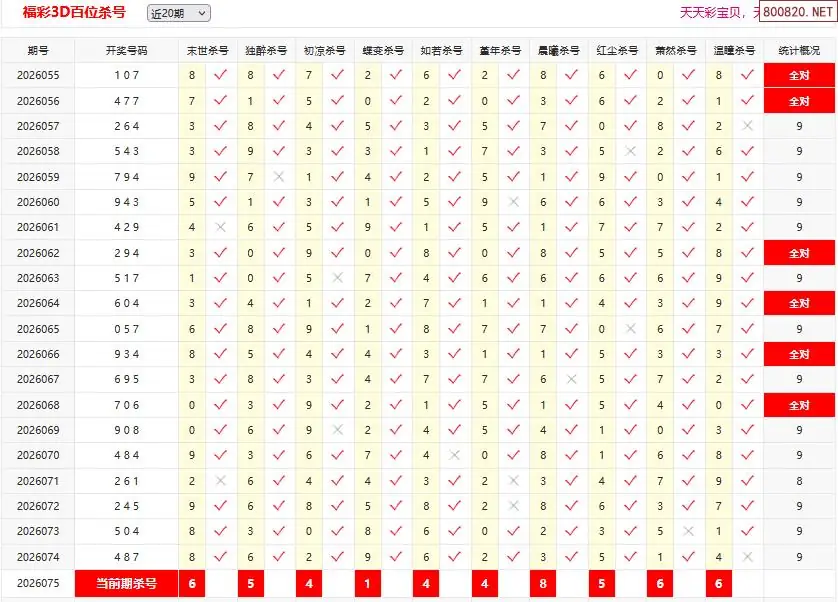 首页〉 3D杀码 走势图 3D胆码3D预测3D图谜3D字谜解太湖3D技巧3D条件3D杀码天齐图库走势图工具试机号 26075期彩宝贝福彩3D百十个位杀号 专题:3D杀码十专家 发布时间:2026-03-26 11:25 开奖:3D开奖结果3D近10期试机号 推荐:宝彩APP 免费方案 智能荐号 热点导航 公告: 天齐新版APP<中大多>上线,点击领鲜 最新文章 26075期彩宝贝福彩3D组选杀号26075期彩宝贝福彩3D百十个位杀号26年075期福彩3d彩经十大专家组选杀号26年075期福彩3d彩经十大专家直选杀号福彩3d26年075期澳客专家杀组选号码福彩3d26年075期澳客专家杀直选号码 更多3D杀码 > 福彩3D 双色球 大乐透 排列三 更多> 3D胆码 3D预测 3D字谜 3D图谜 解太湖 3D条件 3D杀码 P3预测 P3图谜 P3字谜 P3条件 P3胆码 P3杀码 热点导航 天齐图库 走势图 工具图表 试机号 宝彩专家 智能荐号 菜单导航 关闭 福彩3D 3D专家 3D胆码 3D预测 3D字谜 3D图谜 解太湖 3D条件 3D杀码 3D技巧 3D走势图 体彩P3/P5 P3专家 P3预测 P3图谜 P3字谜 P3条件 P3胆码 P3杀码 P5预测 P3走势图 双色球 双色球专家 双色球预测 双色球杀号 双色球字图 双色球胆码 双色球走势 双色球技巧 大乐透 大乐透专家 大乐透预测 大乐透杀号 大乐透胆码 大乐透技巧 大乐透走势 天齐图库 七星彩 七星彩专家 七星彩预测 七星彩图谜 七星彩杀号 七星彩技巧 七星彩走势 天齐走势 七乐彩 七乐彩专家 七乐彩预测 七乐彩杀号 七乐彩技巧 七乐彩走势 热点导航 彩宝网 宝彩网 宝彩网 开奖公告 宝彩专家 牛票票