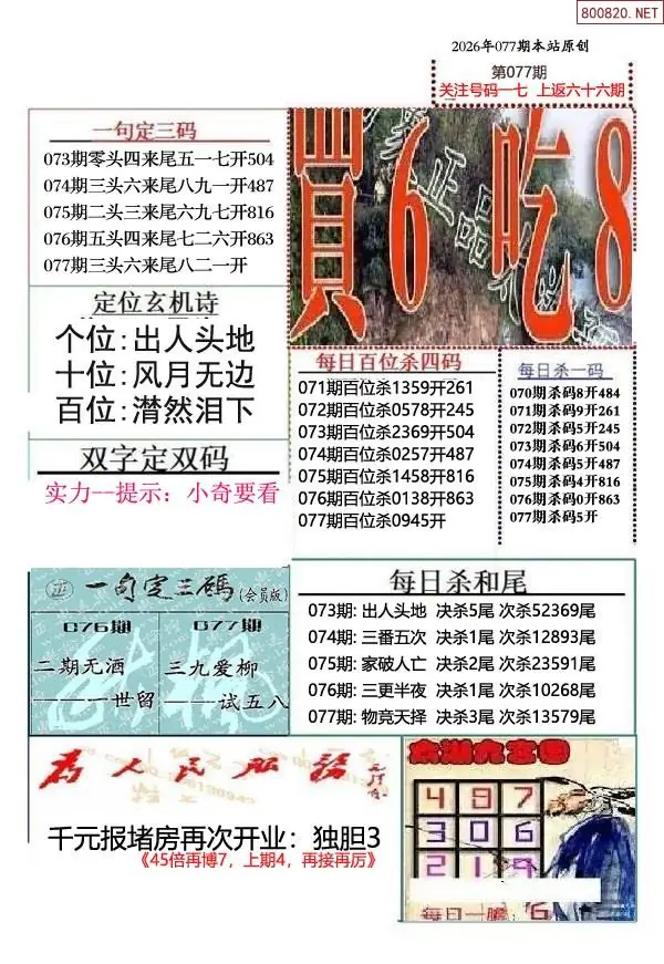 首页〉 3D图谜 走势图 3D胆码3D预测3D图谜3D字谜解太湖3D技巧3D条件3D杀码天齐图库走势图工具试机号 26077期精华布衣123456+好心+早版12 专题:精布衣 发布时间:2026-03-27 19:40 开奖:3D开奖结果3D近10期试机号 推荐:宝彩APP 免费方案 智能荐号 热点导航 公告: 天齐新版APP<中大多>上线,点击领鲜 最新文章 中大多 3D第2026093精准杀一码推荐 3D第2026093于海滨3D五码复试 2026年093期3D图谜汇总(七)2026年093期3d图迷汇总(六)2026年093期3d图谜汇总(五)2026年093期3D图迷汇总(四)2026年093期3d图迷汇总(三)2026年093期3D图谜汇总(二) 更多3D图谜 > 福彩3D 双色球 大乐透 排列三 更多> 3D胆码 3D预测 3D字谜 3D图谜 解太湖 3D条件 3D杀码 P3预测 P3图谜 P3字谜 P3条件 P3胆码 P3杀码 热点导航 天齐图库 走势图 工具图表 试机号 宝彩专家 智能荐号 菜单导航 关闭 福彩3D 3D专家 3D胆码 3D预测 3D字谜 3D图谜 解太湖 3D条件 3D杀码 3D技巧 3D走势图 体彩P3/P5 P3专家 P3预测 P3图谜 P3字谜 P3条件 P3胆码 P3杀码 P5预测 P3走势图 双色球 双色球专家 双色球预测 双色球杀号 双色球字图 双色球胆码 双色球走势 双色球技巧 大乐透 大乐透专家 大乐透预测 大乐透杀号 大乐透胆码 大乐透技巧 大乐透走势 天齐图库 七星彩 七星彩专家 七星彩预测 七星彩图谜 七星彩杀号 七星彩技巧 七星彩走势 天齐走势 七乐彩 七乐彩专家 七乐彩预测 七乐彩杀号 七乐彩技巧 七乐彩走势 热点导航 彩宝网 宝彩网 宝彩网 开奖公告 宝彩专家 牛票票