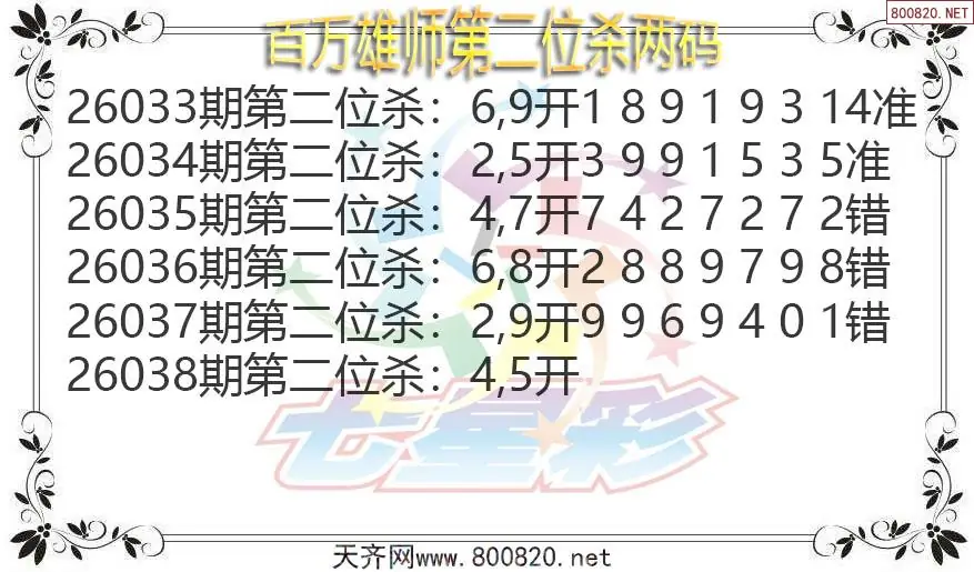 首页〉 七星彩图谜 走势图 七星彩预测七星彩图谜七星彩杀号七星彩技巧天齐图库走势图工具试机号 百万雄师26年038期七星彩杀号图谜 发布时间:2026-04-06 08:20 走势图:七星彩基本走势图七星彩期尾走势图 推荐:宝彩APP 免费方案 智能荐号 热点导航 公告: 天齐新版APP<中大多>上线,点击领鲜 最新文章 2026年老酒鬼038期七星彩胆码推测图百万雄师26年038期七星彩杀号图谜七星彩2026038期燕赤霞不定位杀码图毒霸26年038期七星彩杀号图谜小尼姑玩彩26年038期七星彩后区胆码图谜太上道祖26年038期七星彩杀号图谜 更多七星彩图谜 > 福彩3D 双色球 大乐透 排列三 更多> 3D胆码 3D预测 3D字谜 3D图谜 解太湖 3D条件 3D杀码 P3预测 P3图谜 P3字谜 P3条件 P3胆码 P3杀码 热点导航 天齐图库 走势图 工具图表 试机号 宝彩专家 智能荐号 菜单导航 关闭 福彩3D 3D专家 3D胆码 3D预测 3D字谜 3D图谜 解太湖 3D条件 3D杀码 3D技巧 3D走势图 体彩P3/P5 P3专家 P3预测 P3图谜 P3字谜 P3条件 P3胆码 P3杀码 P5预测 P3走势图 双色球 双色球专家 双色球预测 双色球杀号 双色球字图 双色球胆码 双色球走势 双色球技巧 大乐透 大乐透专家 大乐透预测 大乐透杀号 大乐透胆码 大乐透技巧 大乐透走势 天齐图库 七星彩 七星彩专家 七星彩预测 七星彩图谜 七星彩杀号 七星彩技巧 七星彩走势 天齐走势 七乐彩 七乐彩专家 七乐彩预测 七乐彩杀号 七乐彩技巧 七乐彩走势 热点导航 彩宝网 宝彩网 宝彩网 开奖公告 宝彩专家 牛票票
