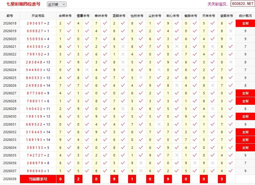首页〉 七星彩杀号 走势图 七星彩预测七星彩图谜七星彩杀号七星彩技巧天齐图库走势图工具试机号 七星彩038期彩宝贝专家杀四位码 专题:第四位杀号 发布时间:2026-04-06 10:02 走势图:七星彩基本走势图七星彩期尾走势图 推荐:宝彩APP 免费方案 智能荐号 热点导航 公告: 天齐新版APP<中大多>上线,点击领鲜 最新文章 一巴掌2026038期七星彩第七位杀两胆推荐七星彩第2026038期不归浪人百万位杀号预测七星彩2026038期无畏第七位杀号推荐七星彩第2026038期黑山老妖十万位杀号定胆金牌男士2026038期七星彩第六位杀双码推测七星彩2026038期旋律第六位杀号分析 更多七星彩杀号 > 福彩3D 双色球 大乐透 排列三 更多> 3D胆码 3D预测 3D字谜 3D图谜 解太湖 3D条件 3D杀码 P3预测 P3图谜 P3字谜 P3条件 P3胆码 P3杀码 热点导航 天齐图库 走势图 工具图表 试机号 宝彩专家 智能荐号 菜单导航 关闭 福彩3D 3D专家 3D胆码 3D预测 3D字谜 3D图谜 解太湖 3D条件 3D杀码 3D技巧 3D走势图 体彩P3/P5 P3专家 P3预测 P3图谜 P3字谜 P3条件 P3胆码 P3杀码 P5预测 P3走势图 双色球 双色球专家 双色球预测 双色球杀号 双色球字图 双色球胆码 双色球走势 双色球技巧 大乐透 大乐透专家 大乐透预测 大乐透杀号 大乐透胆码 大乐透技巧 大乐透走势 天齐图库 七星彩 七星彩专家 七星彩预测 七星彩图谜 七星彩杀号 七星彩技巧 七星彩走势 天齐走势 七乐彩 七乐彩专家 七乐彩预测 七乐彩杀号 七乐彩技巧 七乐彩走势 热点导航 彩宝网 宝彩网 宝彩网 开奖公告 宝彩专家 牛票票