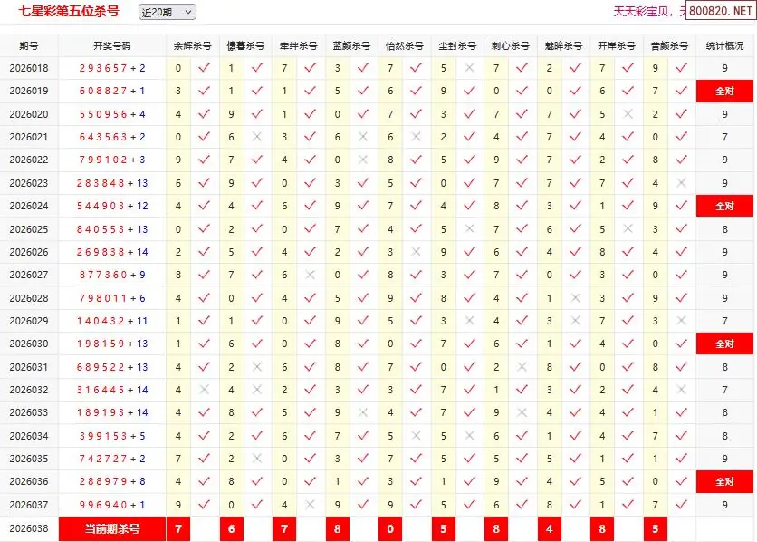 首页〉 七星彩杀号 走势图 七星彩预测七星彩图谜七星彩杀号七星彩技巧天齐图库走势图工具试机号 七星彩038期彩宝贝专家杀五位码 专题:第五位杀号 发布时间:2026-04-06 10:02 走势图:七星彩基本走势图七星彩期尾走势图 推荐:宝彩APP 免费方案 智能荐号 热点导航 公告: 天齐新版APP<中大多>上线,点击领鲜 最新文章 七星彩038期彩宝贝专家后区杀码七星彩038期彩宝贝专家杀六位码七星彩038期彩宝贝专家杀五位码七星彩038期彩宝贝专家杀四位码七星彩038期彩宝贝专家杀三位码七星彩038期彩宝贝专家杀二位码 更多七星彩杀号 > 福彩3D 双色球 大乐透 排列三 更多> 3D胆码 3D预测 3D字谜 3D图谜 解太湖 3D条件 3D杀码 P3预测 P3图谜 P3字谜 P3条件 P3胆码 P3杀码 热点导航 天齐图库 走势图 工具图表 试机号 宝彩专家 智能荐号 菜单导航 关闭 福彩3D 3D专家 3D胆码 3D预测 3D字谜 3D图谜 解太湖 3D条件 3D杀码 3D技巧 3D走势图 体彩P3/P5 P3专家 P3预测 P3图谜 P3字谜 P3条件 P3胆码 P3杀码 P5预测 P3走势图 双色球 双色球专家 双色球预测 双色球杀号 双色球字图 双色球胆码 双色球走势 双色球技巧 大乐透 大乐透专家 大乐透预测 大乐透杀号 大乐透胆码 大乐透技巧 大乐透走势 天齐图库 七星彩 七星彩专家 七星彩预测 七星彩图谜 七星彩杀号 七星彩技巧 七星彩走势 天齐走势 七乐彩 七乐彩专家 七乐彩预测 七乐彩杀号 七乐彩技巧 七乐彩走势 热点导航 彩宝网 宝彩网 宝彩网 开奖公告 宝彩专家 牛票票