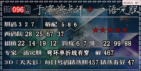 3D 《天天彩》每日号码精选胆457 精选看好47