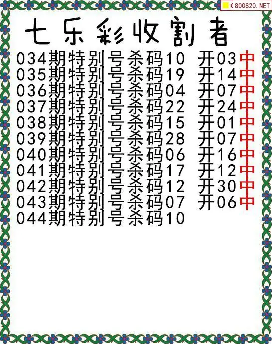 首页〉 七乐彩杀号 走势图 七乐彩预测七乐彩杀号七乐彩技巧天齐图库走势图工具试机号 七乐彩26年044期收割者特别号杀码图迷 发布时间:2026-04-20 22:55 走势图:七乐彩基本走势图七乐彩期尾走势图 推荐:宝彩APP 免费方案 智能荐号 热点导航 公告: 天齐新版APP<中大多>上线,点击领鲜 最新文章 七乐彩26年044期乱舞飞扬特别号杀码图迷七乐彩2026044期流光岁月杀码图迷七乐彩26044期舞动乾坤杀两码图迷黄忠2026043期七乐彩专家杀一码图七乐彩2026043期降龙罗汉杀号图2026年钟馗043期七乐彩杀特别号码图 更多七乐彩杀号 > 福彩3D 双色球 大乐透 排列三 更多> 3D胆码 3D预测 3D字谜 3D图谜 解太湖 3D条件 3D杀码 P3预测 P3图谜 P3字谜 P3条件 P3胆码 P3杀码 热点导航 天齐图库 走势图 工具图表 试机号 宝彩专家 智能荐号 菜单导航 关闭 福彩3D 3D专家 3D胆码 3D预测 3D字谜 3D图谜 解太湖 3D条件 3D杀码 3D技巧 3D走势图 体彩P3/P5 P3专家 P3预测 P3图谜 P3字谜 P3条件 P3胆码 P3杀码 P5预测 P3走势图 双色球 双色球专家 双色球预测 双色球杀号 双色球字图 双色球胆码 双色球走势 双色球技巧 大乐透 大乐透专家 大乐透预测 大乐透杀号 大乐透胆码 大乐透技巧 大乐透走势 天齐图库 七星彩 七星彩专家 七星彩预测 七星彩图谜 七星彩杀号 七星彩技巧 七星彩走势 天齐走势 七乐彩 七乐彩专家 七乐彩预测 七乐彩杀号 七乐彩技巧 七乐彩走势 热点导航 彩宝网 宝彩网 宝彩网 开奖公告 宝彩专家 牛票票