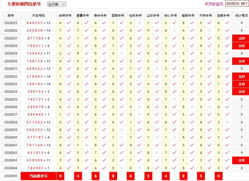 首页〉 七星彩杀号 走势图 七星彩预测七星彩图谜七星彩杀号七星彩技巧天齐图库走势图工具试机号 七星彩045期彩宝贝专家杀四位码 专题:第四位杀号 发布时间:2026-04-22 10:20 走势图:七星彩基本走势图七星彩期尾走势图 推荐:宝彩APP 免费方案 智能荐号 热点导航 公告: 天齐新版APP<中大多>上线,点击领鲜 最新文章 体彩七星彩045期彩经十大专家第一位杀号七星彩045期彩宝贝专家后区杀码七星彩045期彩宝贝专家杀六位码七星彩045期彩宝贝专家杀五位码七星彩045期彩宝贝专家杀四位码七星彩045期彩宝贝专家杀三位码 更多七星彩杀号 > 福彩3D 双色球 大乐透 排列三 更多> 3D胆码 3D预测 3D字谜 3D图谜 解太湖 3D条件 3D杀码 P3预测 P3图谜 P3字谜 P3条件 P3胆码 P3杀码 热点导航 天齐图库 走势图 工具图表 试机号 宝彩专家 智能荐号 菜单导航 关闭 福彩3D 3D专家 3D胆码 3D预测 3D字谜 3D图谜 解太湖 3D条件 3D杀码 3D技巧 3D走势图 体彩P3/P5 P3专家 P3预测 P3图谜 P3字谜 P3条件 P3胆码 P3杀码 P5预测 P3走势图 双色球 双色球专家 双色球预测 双色球杀号 双色球字图 双色球胆码 双色球走势 双色球技巧 大乐透 大乐透专家 大乐透预测 大乐透杀号 大乐透胆码 大乐透技巧 大乐透走势 天齐图库 七星彩 七星彩专家 七星彩预测 七星彩图谜 七星彩杀号 七星彩技巧 七星彩走势 天齐走势 七乐彩 七乐彩专家 七乐彩预测 七乐彩杀号 七乐彩技巧 七乐彩走势 热点导航 彩宝网 宝彩网 宝彩网 开奖公告 宝彩专家 牛票票